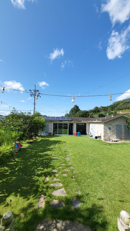 놀자멍은 천연잔디로 꾸며진 100평 독채 마당입니다.