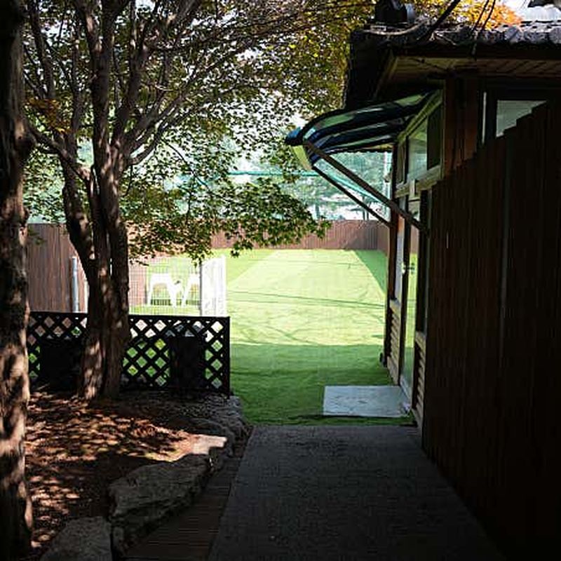 추가 1인 또는 1견당 추가요금 5,000원 작은 운동장에 인조잔디가 깔려있고, 넓은 데크와 지붕이 있어서 비나 눈이 오는 날도 아이들과 앉아 간식을 먹을 수 있습니다. 작지만 아늑한 휴게실이 있어서 추울 때에는 안에 들어가서 쉬실 수도 있고, 작은 냉장고와 전기 포트, 전자레인지가 구비되어 있습니다.