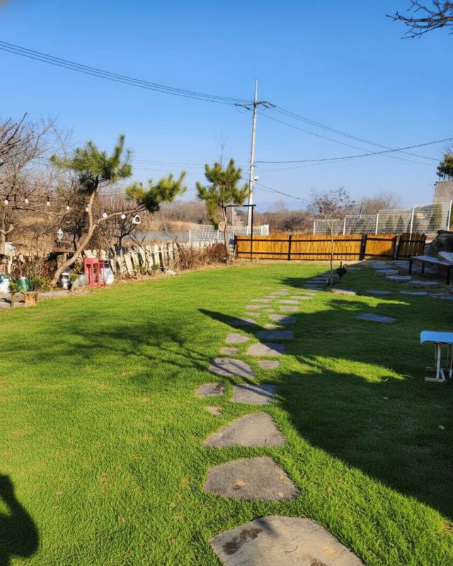 ✅ 잔디로 잘 가꿔져 있어 강아지가 뛰뛰하기 좋아요.