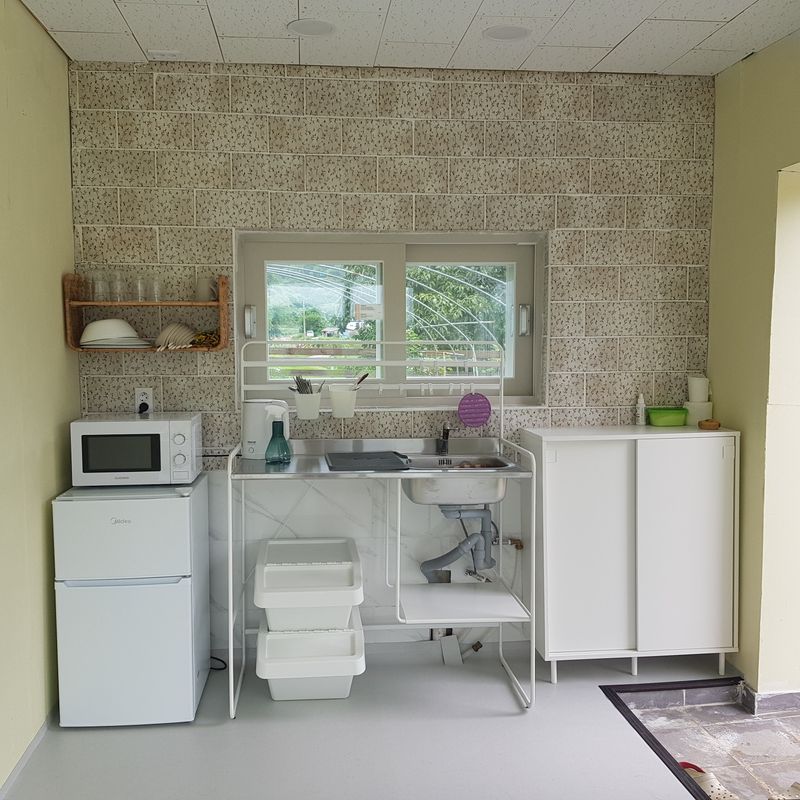 의자, 테이블, 파라솔, 강아지 물그릇, 강아지 물(생수 제공), 강아지 물(밖에 음수가 가능한 수돗가가 있습니다), 배변봉투(마당에 지속적으로 비치 가능한 경우), 쓰레기통, 구이바다, 담요, 핫팩, 물티슈, 젓가락, 수저