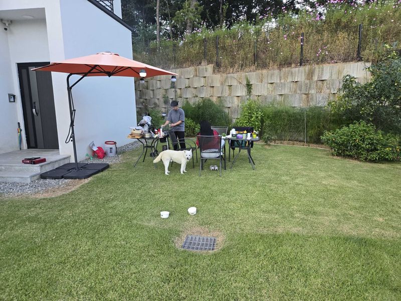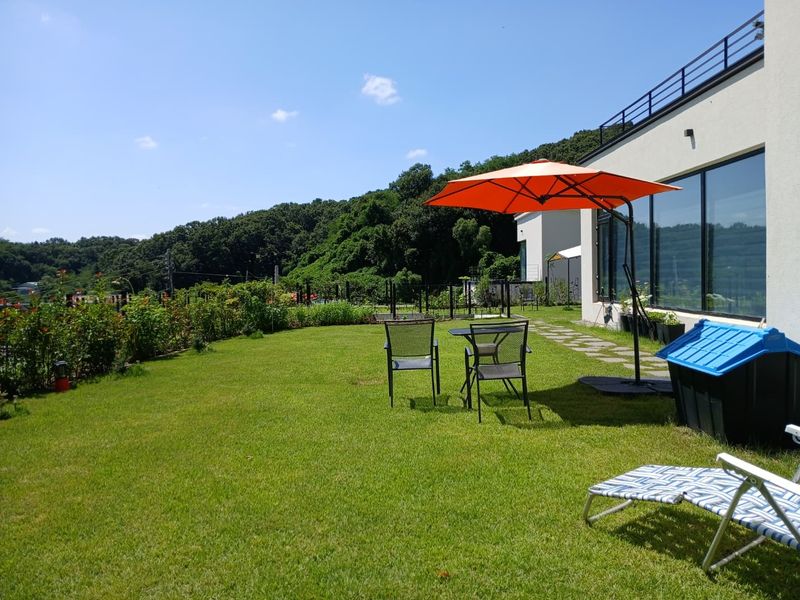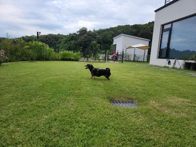 😄 호스트가 한땀한땀 정성들여 관리하는 천연잔디로 160평의 마당에서 댕댕이와 소중한 시간을 보낼 수 있어요!