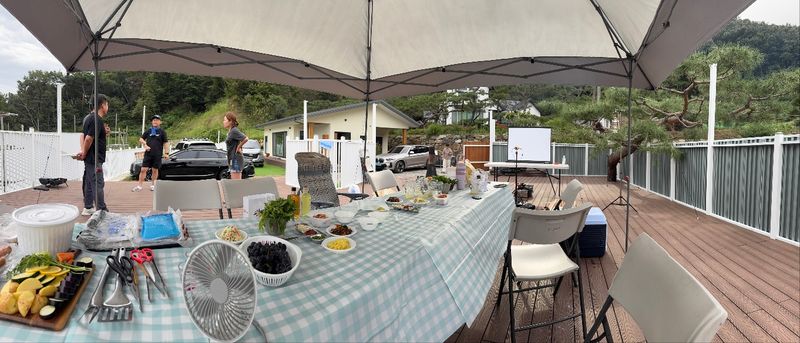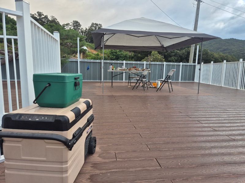 😄 250평의 마당에는 데크와 인조잔디, 텃밭, 자갈마당, 야외주방, 콘테이너가 있어요!