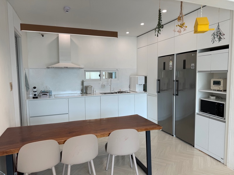 - 주방 : 6인용식탁, 얼음정수기, 냉장고, 전자레인지, 인덕션, 전기밥솥(6인용), 캡슐커피머신, 냄비, 후라이팬, 취사도구, 접시, 그릇, 수저, 트라이탄컵, 전기그릴(예약시 무료사용가능)