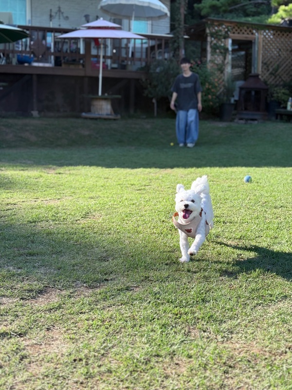 중형견이라 애견카페고르기가 까다로워 종종 마당 대여하는데 와봤던 곳 중에 여기가 애들이 젤 좋아하네요👍 사장님도 친절하시고 애들도 힘껏 뛰어오니 정말 기분좋았습니다!마당이 넓어 애들이 탐색하며 언덕도 있어 뛰어놀기 재밌나봅니다🐶울타리는 안전하게 쳐져있습니다! 다음에 또 방문 할 것 같습니다!