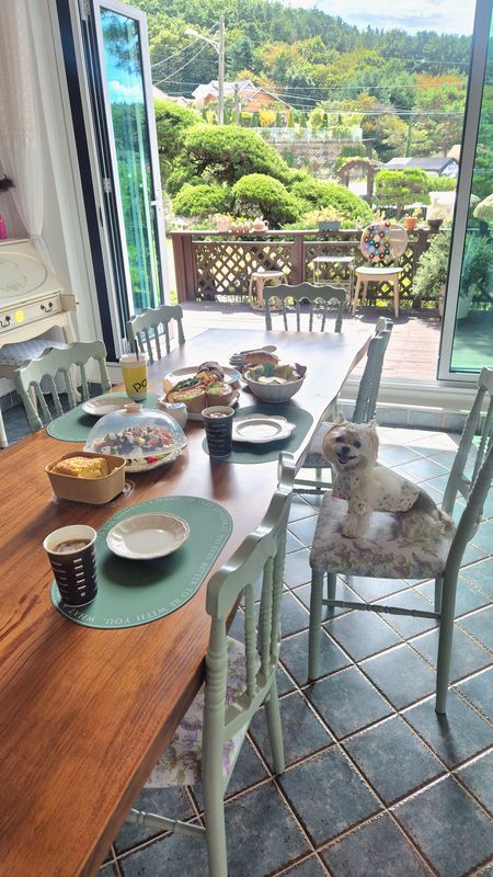 우연히 알게되어 강아지 친구들이랑 가게되엇는데~ 프로방스 온것처럼 안에 내부도 넓고 장식 인테리어 하나하나 감성적이고 너무너무 이쁘고 ,음료수 부터 소소한 먹거리 진심 감탄 햇어요 사장님 왕왕 친절하시고 대형견 7마리가 가도 충분하더라구요 사장님께 죄송하지만 저만 알고 싶은곳예요 ㅋㅋ 재방문 10000000% 영상으로 보여드리고 싶은데 영상은 올릴수가 없는게 아쉽네요 ㅠ