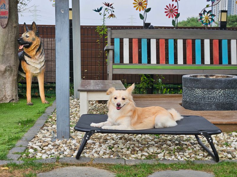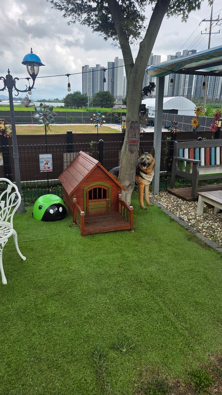 파주에서 댕댕이와 어디를 갈까 고민되시면??? 고민말고 댕댕이천국으로 오세요. 깨끗하고 관리 잘 된 잔디마당, 아기자기 예쁜 조경물, 작은 친구들도~ 물을 무서워하는 친구들도 찰방찰방 잘 놀 수 있는 미니 수영장, 친절하고 따뜻한 사장님 내외. 아이들이 다녀오면 항상 행복해합니다. 이제 가을이 오면 더 시원하고 더 멋질꺼 같습니다. 댕댕이천국 강추합니다