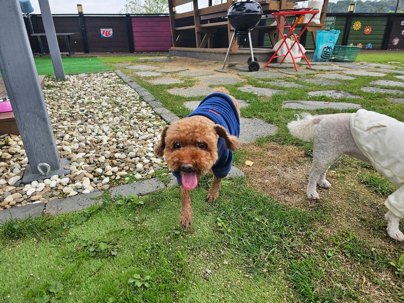 댕댕이천국을 포동멍래블로 예약하고 다니다가 촌크닉 가입했네요~ 저는 댕댕이천국 단골이에요. 댕댕이천국은 그냥 집 마당처럼 편하면서도 강아지를 위한 곳이기에 놀기도 좋아서 자주 갑니다. 저는 사진찍는걸 좋아하기에 구석구석 사진 찍을 포토존이 많은 댕댕이천국은 최고의 스튜디오가 되고 멋진 배경을 만들어줍니다. 소품이 엄청 많아서 그냥 막 찍는 사진마다 포토존에서 사진찍은것 같아요~ 때가되면 바껴져있는 소품들이 갈때마다 사진이 새로워지고 재미있더라구요~ 바로 앞에 이마트있고 편의점도 가까워요. 어디 멀리 가지 않아도 천연잔디에서 놀 수 있고 배달음식도 시켜먹을 수 있으니 이젠 진짜 내집처럼 편합니다ㅋㅋ 저희는 소형견이라서 가볍게 첨벙거리고 노는 풀장도 딱 안성맞춤이에요. 뭐 대형견도 적당히 털적시고 놀기에 무리없어 보입니다. 사장님 부부 굉장히 친절하시고 강아지를 위한 배려에 세심하신것 같아요. 깨끗하고 안전한 댕댕이천국 강력추천합니다!⭐️⭐️⭐️⭐️⭐️