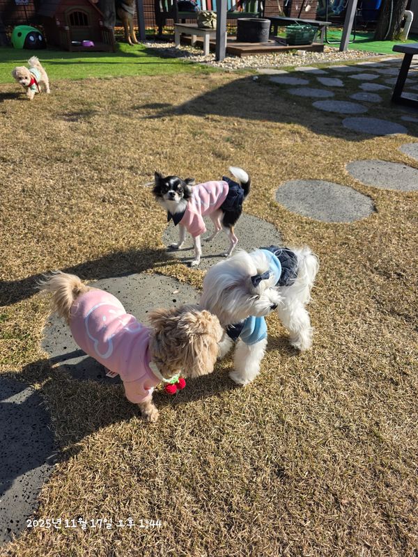 너무 신난 삼둥이들 댕댕이천국 너무 좋아해요. 항상 갈때마다 청결하시고 강아지들 위해 신경 많이 쓴 티가 팍팍 나는 곳 입니다. 친절하게 대해주시고 잘해주셔서 감사드려요😀🥰