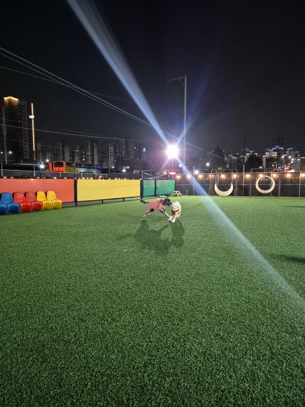 잔디가 너무 좋고 깨끗합니다. 여름에 진드기 걱정 없이 편하게 뛰어 놀수 있어서 좋네요. 한강라면도 준비되어 있어 배고플때 딱이고 음료도 준비되어 있어 너무 합리적인 가격에 견주도 잘 쉬다 오게 되네요. 항상 친절하게 대해 주셔서 감사합니다.