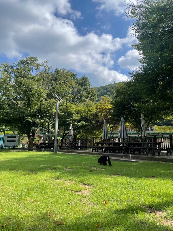 작년 겨울부터 꾸준히 다니게 된 아끼는 곳입니다. 만복이가 진돗개라 깔끔떨고 물 싫어하고, 따지는게 많은데 송추써니네만 오면 뒹굴고 다니면서 너무 좋아합니다. 저희집과 가깝고 공기도 너무 좋습니다. 산근처라 나무가 많아서 도심보다 선선하고 쾌적해요. 여름에는 모기향과 진드기기피제도 다 준비해놓으셔서 벌레 방해없이 편하게 놀수 있습니다. 저는 사실 장작불 추가해서 노는걸 좋아해서 날씨 추워지기만을 기다리고 있어요!!