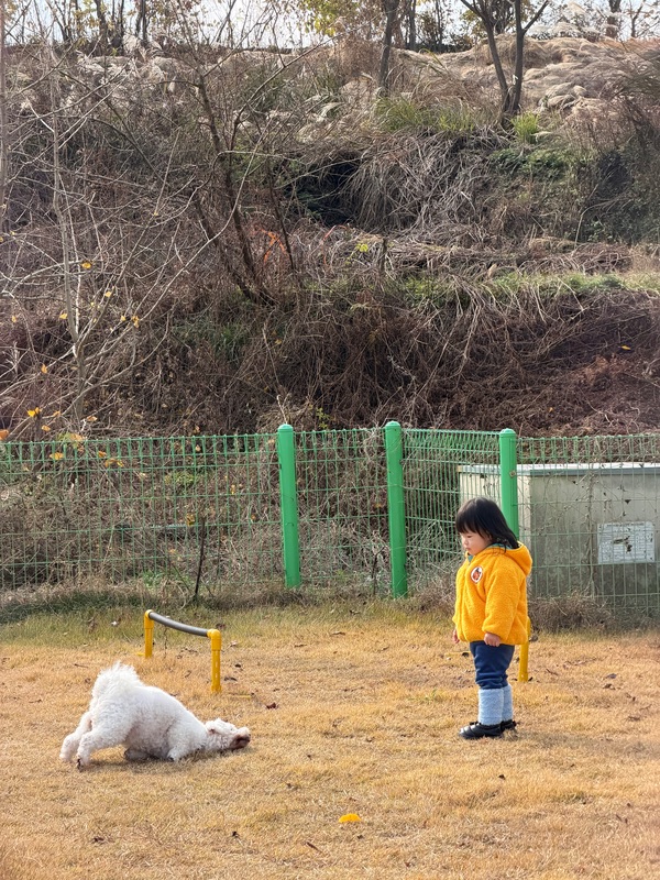 넓고 쾌적한 실,내외 장소와 응가봉투, 물티슈 등 정말 몸만 가도 될만큼 완벽하게 구비되어 있습니다. 한적하고 넓은 곳에서 강아지들이 신나게 뛰뛰 멍멍할 수 있어요. 강아지들 뿐만 아니라 견주분들을 위한 커피, 식사까지 있어 저희도 모두 좋은 날에 제대로 힐링하고 왔습니다~! 주인분들도 너무 친절하셔요. 강아지들 수제 간식도 주시고, 저희 간식도 챙겨주셔서 배부르게 나왔습니다. 이제 매주 가려구요. 너무너무 좋아요~~~!!