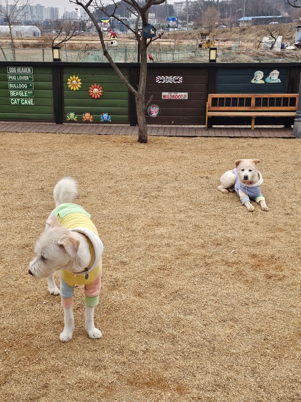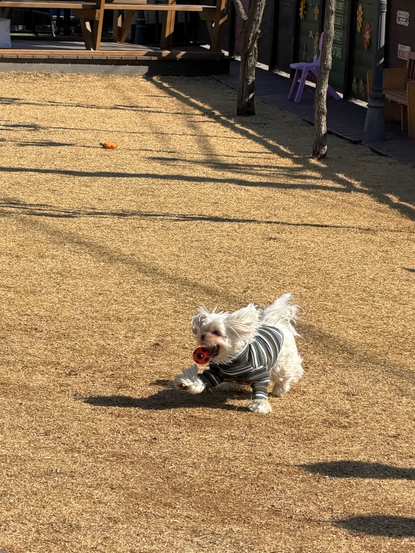 오늘도 넘 귀여운 사진 건져왔네요. 공간이 넓고 깨끗해서 애기들이 너무 신나게 잘뛰어놀아요^^ 항상 챙겨주시고 불편한거 없냐며 배려해주시는 사장님 감사합니다. 여긴 진짜 최애 마당입니다. 다들 꼭 방문해보세요☺😊