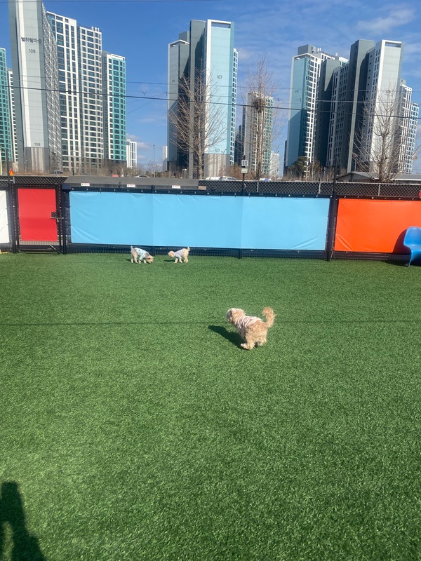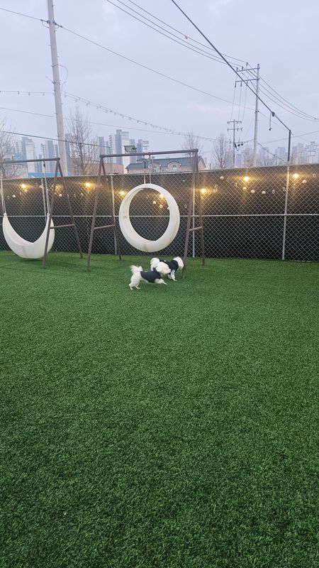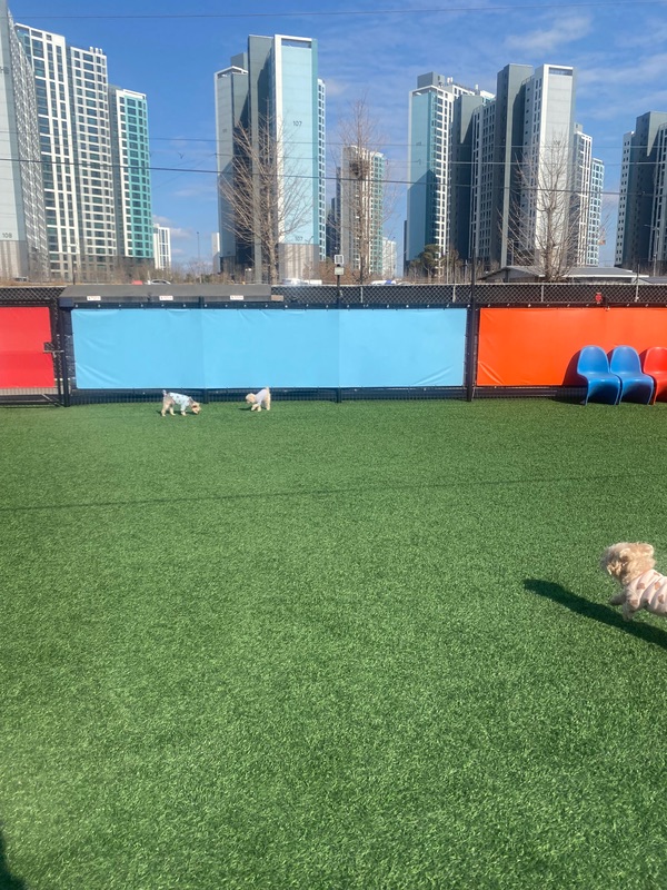 비가 오나 눈이 오나 인조잔디라 걱정 없어요! 심지어 견주들이 쉴 수 있는 실내 공간도 엄청 넓어서 따뜻하고 여름에는 시원해요😊 아가들이 뛰뛰 하는 공간은 200평이 넘기 때문에 한번 갔다 오면 아가들 무조건 기절이에요˃ ᵕ ˂ 2주에 한번은 꼭 방문하는 것 같아요! 아가들이 너무너무 좋아해서 안 갈 수가 없어요⸝⸝⸝˃֊˂ 또 방문할게용❣️❣️