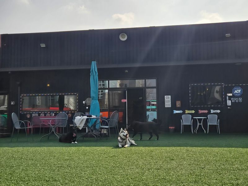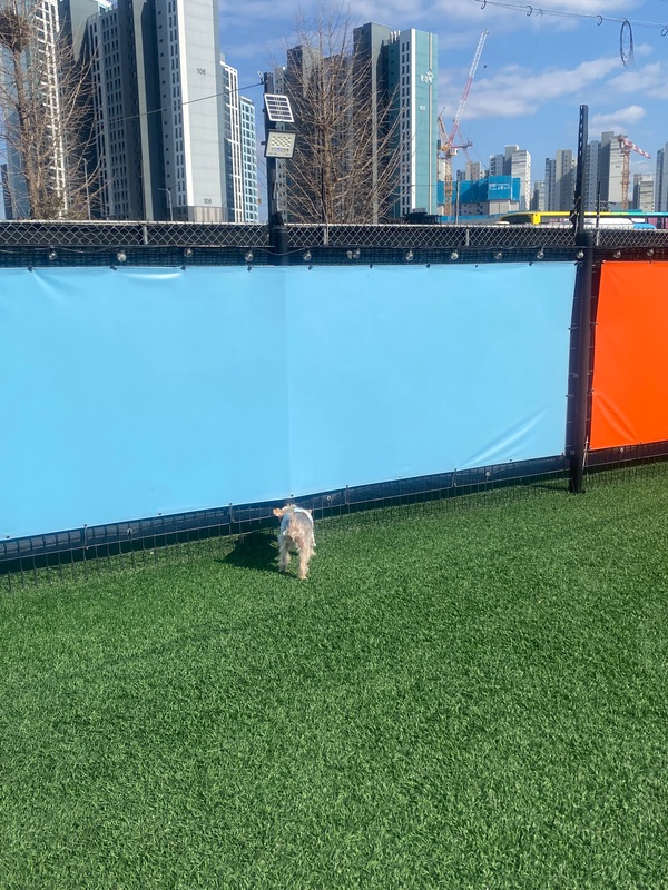 주변 환경도 조용한 편이고, 도로변의 가림막이 이중으로 잘 되어 있어서 프라이버시가 지켜지는 점이 특히 좋아요. 덕분에 강아지들도 외부 자극에 덜 예민해지고 훨씬 편하게 뛰어놀 수 있는 것 같아요!