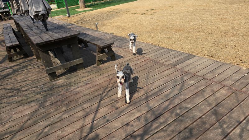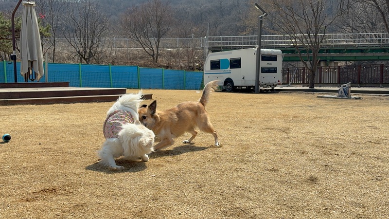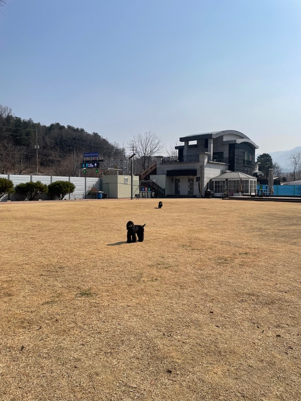 운동장 사이즈: 평평하고 마당 같은 운동장이 안정감 있어서 20킬로 덩치 둘이 신나게 우다다 뛰고 냄새맡고 그간 쌓인 에너지 다 발산하고 옴. 특히 잔디 흙의 조화가 애들이 뛰뛰해도 패드가 안다치게 부드러워서 좋음. 모래 자갈ㄴㄴ