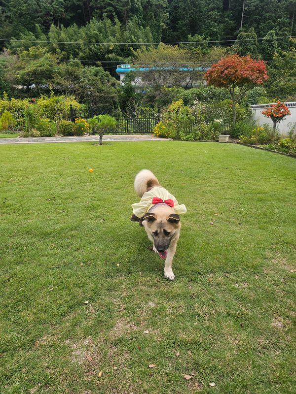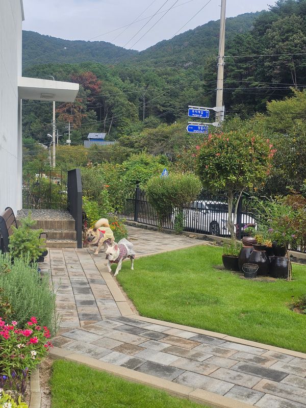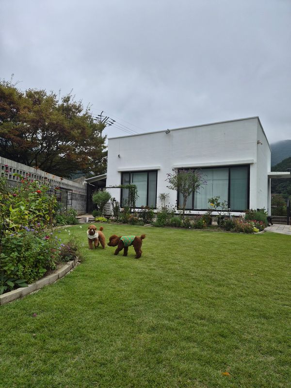 연휴 마지막날 잘 놀고왔어요. 울 멍뭉이는 막~뛰어다니는 애가 아니라서 마당도 혼자 놀기 넉넉했고 잔디도 꽃도 관리도 잘되어있고 냄새맡는거 좋아하는아이라 너무 잘 놀았어요. 구석구석 꼼꼼히 엄청 탐색다니면서 두시간 알차게 잘 보내다 왔습니다! 사장님 사시는 앞마당이지만 노는데 전혀 방해되거나 불편한거 없이 친절하셨고 감도 깎아주시고 잘먹었어요ㅋㅋㅋㅋ 다음에 또 가려구요.