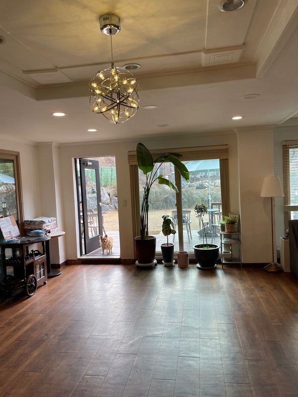 집에서 가까운 곳이어서 방문했어요! 도착하니까 문도 직접 열어주시고 친절하게 반겨주셨어요. 마당이랑 언덕이 있어서 뛰뛰하기에도 엄청 넓고, 어떤 곳이고 구멍없이 울타리로 다 막혀있으니 아무래도 안심이었어요. 실내공간도 너무 예쁘고 식기도 모두 구비되어있고요!