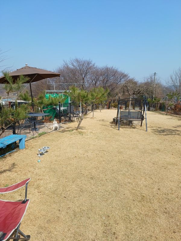 울타리 있는 마당도 넓은데 그 외 산책할 수 있는공간도 넓어서 지루하지 않아좋았어요. 좁은시골길을 가야하지만 그래도 갈만한 가치가 있습니다