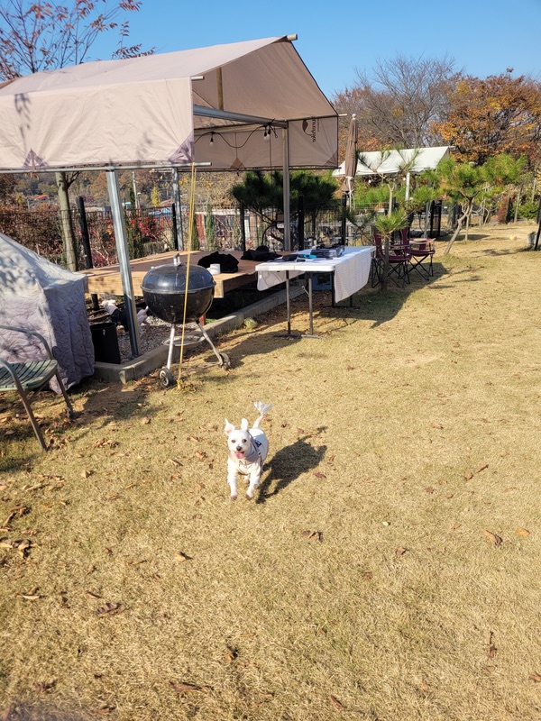 저희 강아지가 애는 착한데, 사회성이 부족한 상태로 성견이 되어 저희집에 입양와서 일반적인 애견카페나 운동장에 가기가 마땅치 않아 공간 대관을 알아보게 되었습니다! 대관은 전에도 몇번 했지만, 좀더 천연잔디에서 뛰어놀게 해주고 싶은 마음에 검색하다가 촌크닉을 알게됐고, 그중에서 위치가 너무 멀지 않은 영이네를 이용했습니다. 오프리쉬하고 놀 수 있는 공간도 넓은데, 울타리 넘어 한바퀴 산책까지 할 수 있는 곳이라 너무 좋았어요~ 사장님 엄청 친절하시구, 저희 배고픈 상태로 배달 시켜 먹어서 죄송했는데 막 쓰레기 놓고 가도 된다고 편하게 먹으라고 실내에 난로도 켜주시고 ㅠㅠ 사실 대관하면서 이렇게 친절하고 잘되어 있는 곳은 처음이었어서 완전 감동이었습니다🤎 날씨가 이상하리만치 더워서 바깥에서 먹었지만, 밖에서도 식사할 수 있게 테이블, 의자 등 다 마련되어 있었고, 집기류도 있었어요! 남편은 남편대로 미니 축구골대에 공 넣으며 놀고, 강아지는 장난감 삑삑 물어대며 뛰뛰하고 진짜 행복한 시간 보냈습니다👍👍 또 놀러갈게요~ 감사합니다 사장님~~