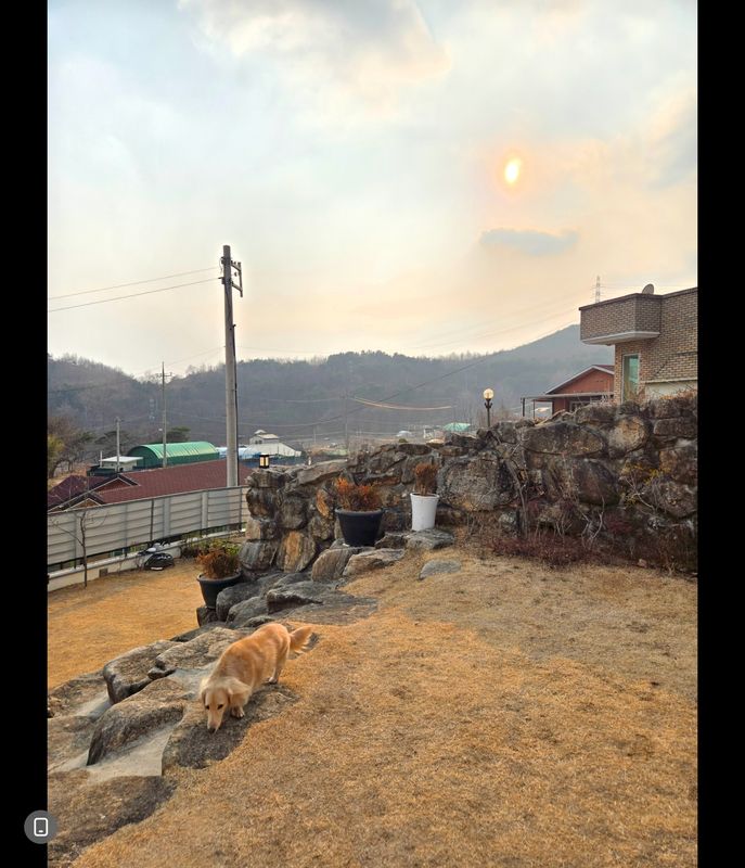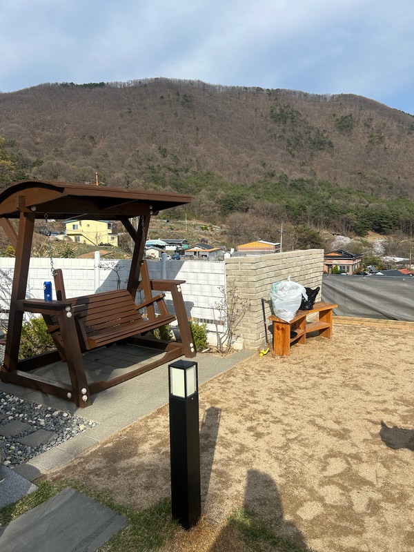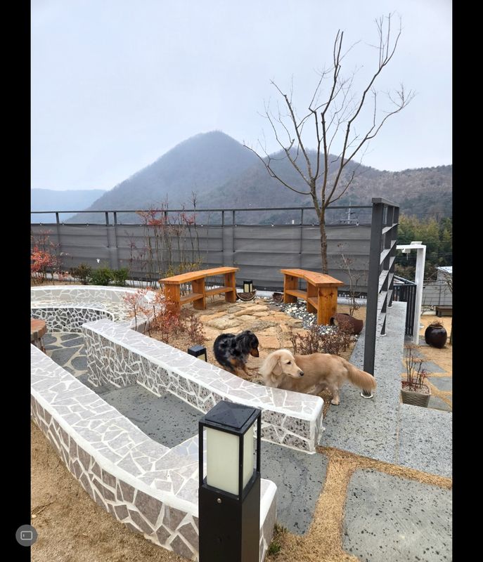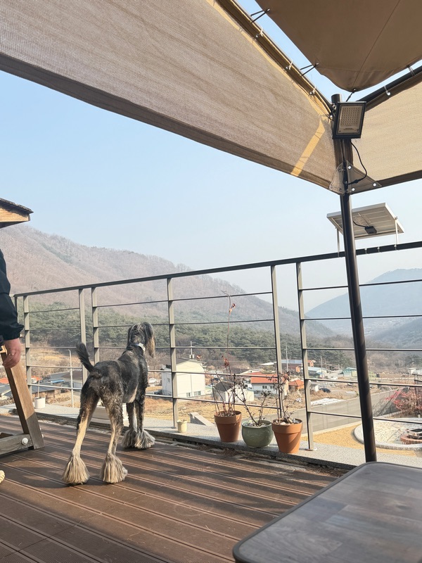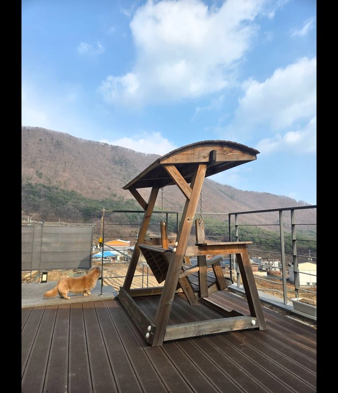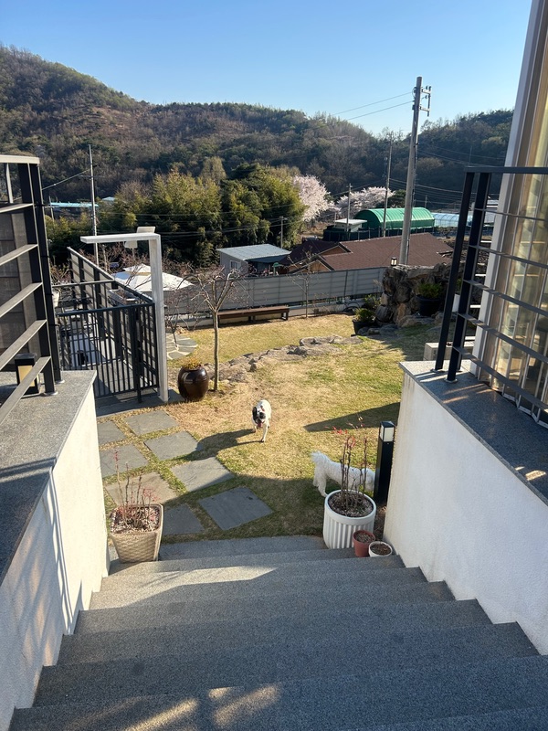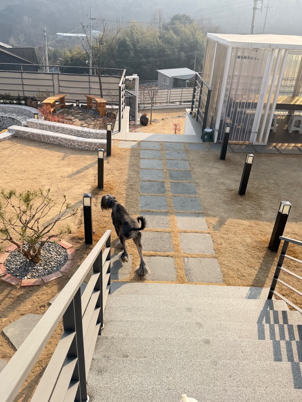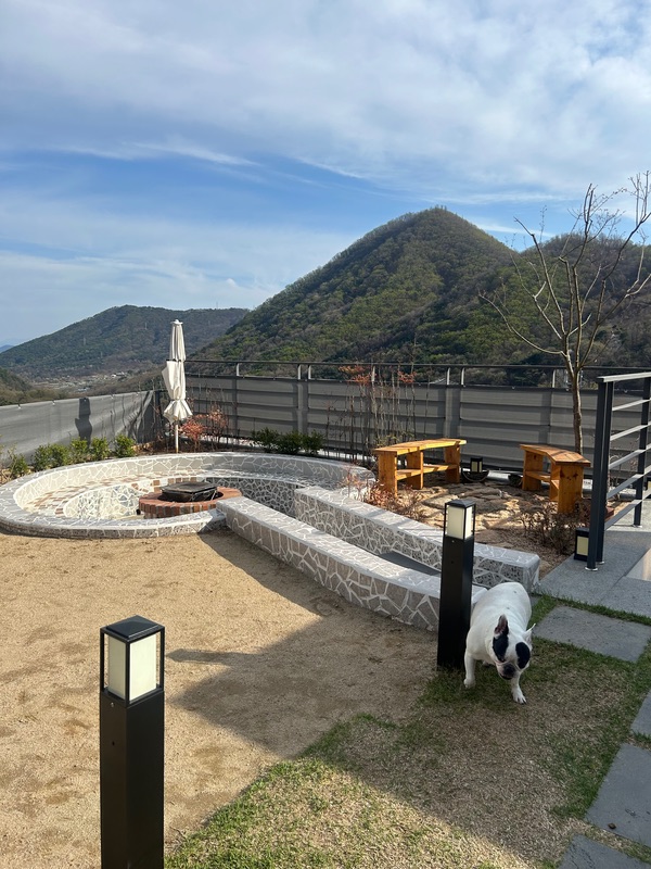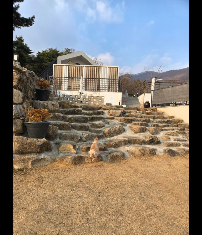 마당이 계단형으로 되어있어 강쥐들이 호기심있게 냄새맡고 돌아다니며 즐기더라구요 고기도 구워먹고 앉아서 얘기도 하고ㅎㅎ 정수기가 고장나있었지만 주인분께서 식수랑 데워먹을 물을 넉넉히 주셔서 불편없이 즐길수있었어요