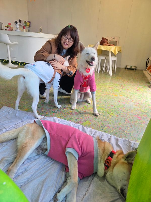 진돗개 블랙탄 두마리 신나게 놀다왔어요~~놀고 저녁먹다보니 4시간이 후딱 지나서 1시간 더 연장했고 사장님이 편하게 천천히 가셔도 된다고해서 느긋하게 정리하고 퇴실 했습니다. 담에 또 갈께요^^
