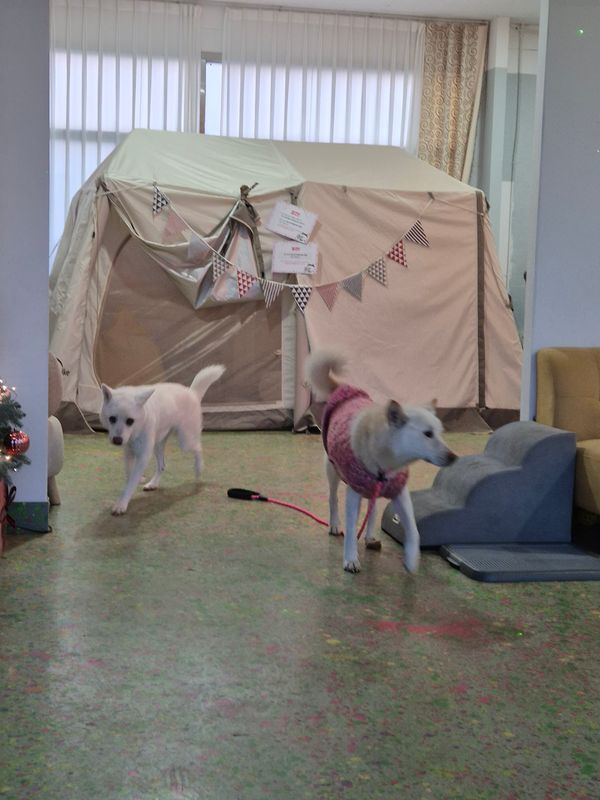 춥다고해서 걱정했는데 실내는따뜻해서 너무좋았고 마당도넓고 실내도 깨끗하게 관리되어있어서 너무 좋았습니다~~! 어른들 간식 구매할수있게되어있던데 강아지간식도 있으면 좋겠습니다 집근처랑 자주갈거같아용 애기랑 강아지랑 잠깐이지만 행복한 크리스마스보냈습니다 감사합니다🤎